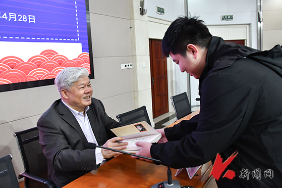 活动现场,聂震宁就“大学生应该选择什么样的书”“如何通过阅读实现蜕变”等问题与同学们互动交流,并签赠《阅读力》《阅读力决定学习力》《书生行》等著作。