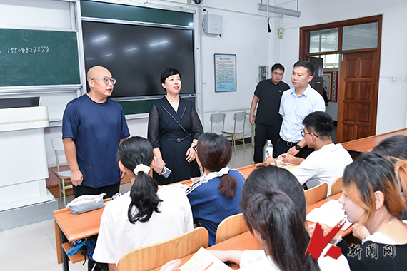 9月1日,广发体育党委副书记孙晓华带领学生工作处相关负责同志和辅导员,深入教室检查新学期学生学习秩序,全面了解和掌握新学期教学安排和学生状态。